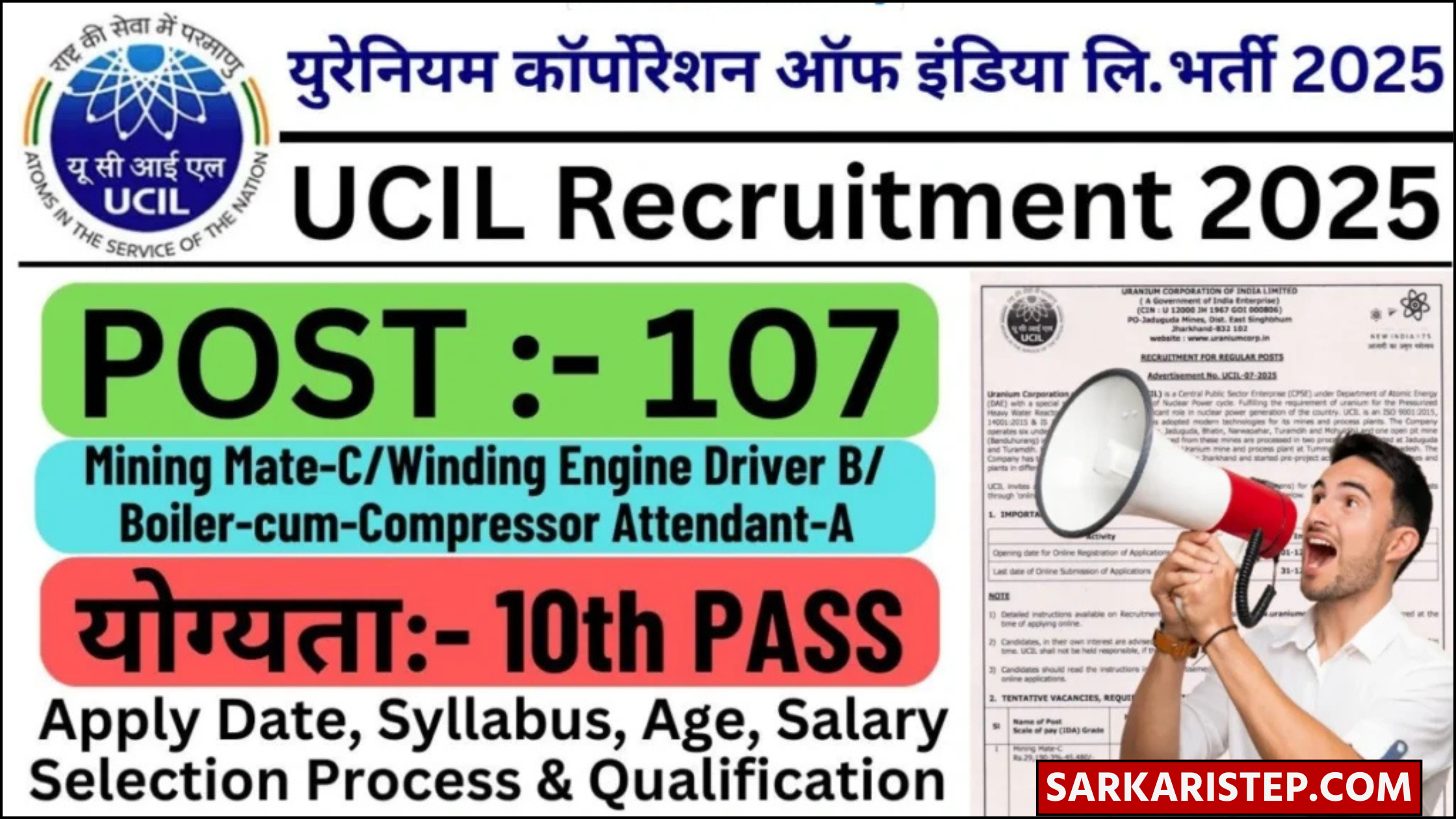 UCIL Bharti 2025: युरेनियम कॉर्पोरेशन ऑफ इंडिया में 107 पदों पर भरती शुरू | Mining Mate, Winding Engine Driver, Boiler Attendant
