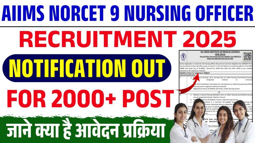 अगर आप मेडिकल फील्ड में सरकारी नौकरी की तैयारी कर रहे हैं तो आपके लिए शानदार मौका है। AIIMS NORCET 10 Recruitment 2026 के तहत लगभग 3000 Nursing Officer पदों पर भर्ती का नोटिफिकेशन जारी किया गया है। यह भर्ती देशभर के विभिन्न AIIMS संस्थानों के लिए आयोजित की जाएगी।
