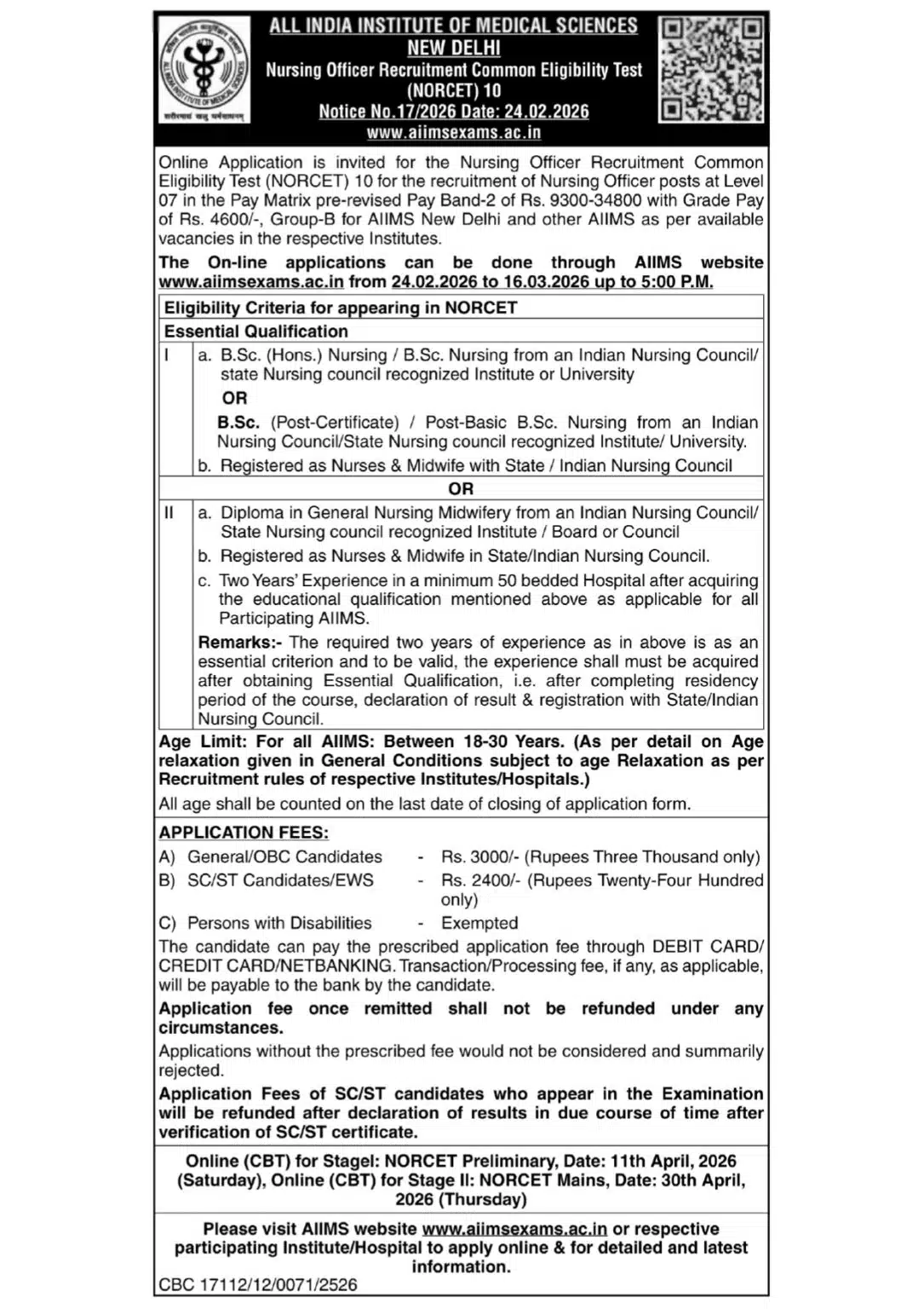 AIIMS NORCET 10 Vacancy 2026 – मुख्य जानकारी