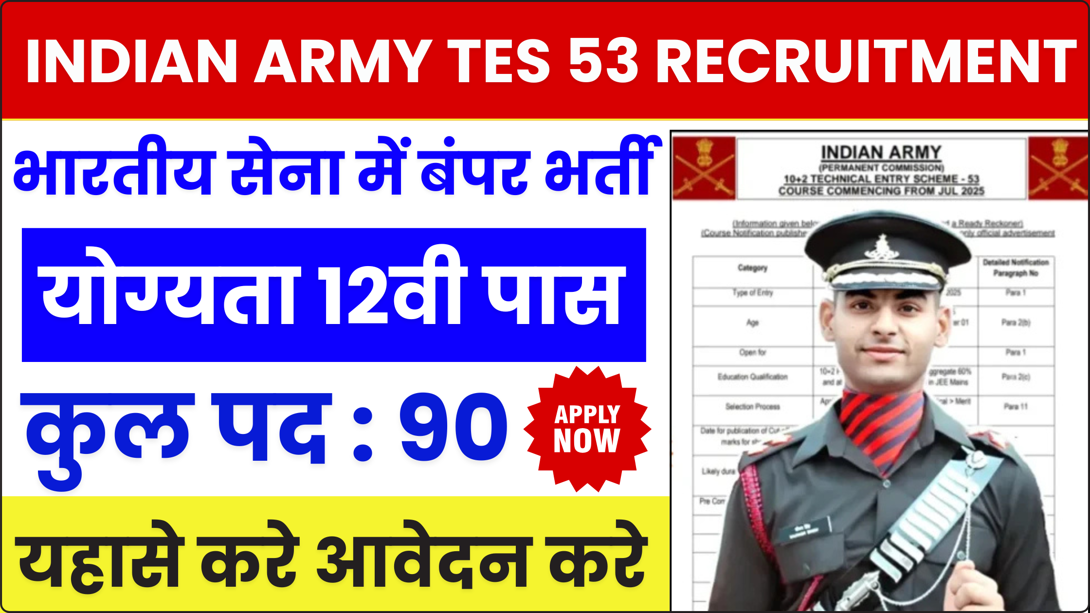 भारतीय सेना ने 10+2 टेक्निकल एंट्री स्कीम (TES) 55 बैच के लिए नई भर्ती 2025 का नोटिफिकेशन जारी किया है। इस भर्ती के तहत 90 पदों पर आवेदन आमंत्रित किए गए हैं। इच्छुक उम्मीदवार जिन्होंने JEE Mains 2025 में भाग लिया है और 10+2 (फिजिक्स, केमिस्ट्री, मैथ्स) में कम से कम 60% अंक प्राप्त किए … Read more