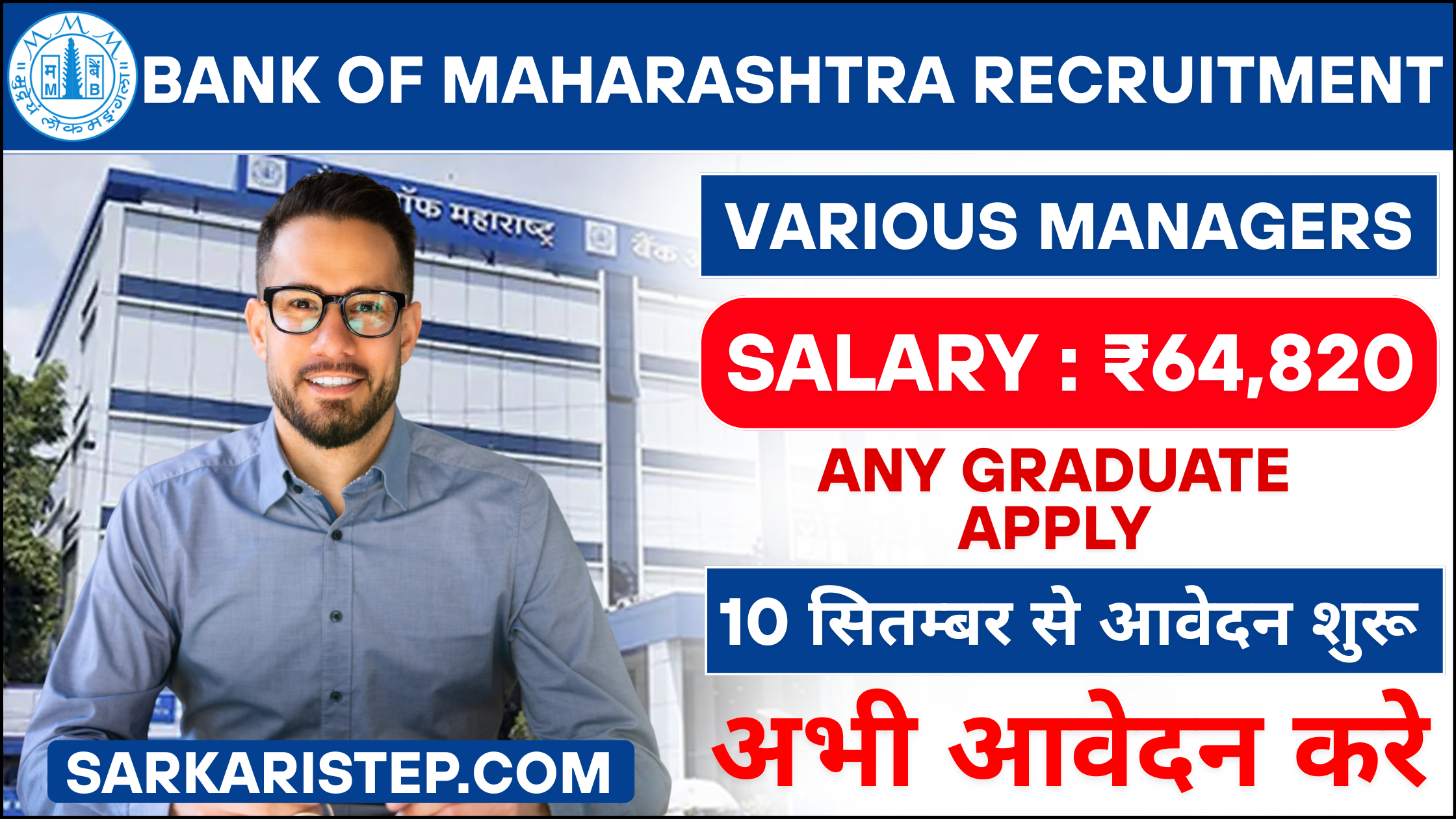 Bank of Maharashtra ने Various Managers Recruitment 2025 के लिए Notification जारी कर दिया है। इस भर्ती के अंतर्गत Assistant General Manager, Chief Manager, Senior Manager, Manager समेत कुल 350 पदों पर भर्ती होगी।