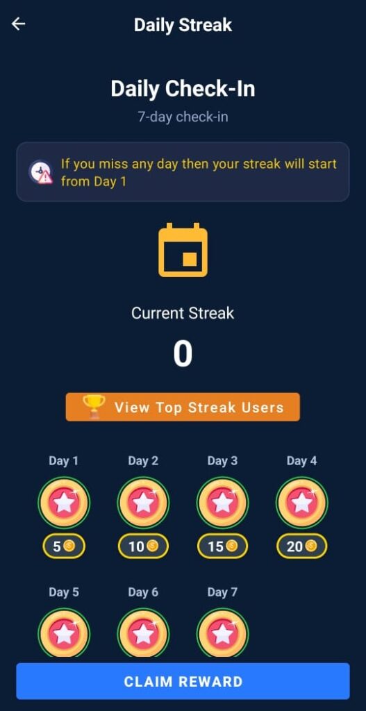 Daily Check In: рдЕрдЧрд░ рдЖрдк рдпрд╣рд╛рдВ рдкрд░ рдХреБрдЫ рдХрд╛рдо рдирд╣реАрдВ рдХрд░рдирд╛ рдЪрд╛рд╣рддреЗ рдмрд╕ рдЫреЛрдЯрд╛ рд╕рд╛ рдЯрд╛рд╕реНрдХ рдкреВрд░рд╛ рдХрд░рдирд╛ рдЪрд╛рд╣рддреЗ рд╣реЛ рддреЛ рдпрд╣рд╛рдВ рдкрд░ рджреЗрдЦрд┐рдП рдЖрдкрдХреЛ рдмрд╕ рд╣рд░ рджрд┐рди рдПрдкреНрд▓реАрдХреЗрд╢рди рдХреЛ рд▓реЙрдЧрд┐рди рдХрд░рдирд╛ рд╣реИ рдФрд░ рд╣рд░ рджрд┐рди рд▓реЛрдЧрд┐рди рдХрд░рдиреЗ рдХреЗ рдмрджрд▓реЗ рдбреЗрд▓реА рдЪреЗрдХрд┐рдВрдЧ рдХрд╛ рдХреЛрдИ рдСрдкреНрд╢рди рдорд┐рд▓рддрд╛ рд╣реИ рдЙрд╕рдореЗрдВ рдЬрд╛рдХрд░ рдмрд╕ рдПрдХ рдмрд╛рд░ рдЪреЗрдХрд┐рдВрдЧ рдХрд░ рд▓реАрдЬрд┐рдП рдФрд░ рдПрдХ рдРрдб рджреЗрдЦ рд▓реАрдЬрд┐рдП рдмрд╕ рдЖрдкрдХреЗ рд╡реЙрд▓реЗрдЯ рдореЗрдВ рдмреЛрдирд╕ рдЬреЛ рд╣реИ рд╡рд╣ рдХреНрд░реЗрдбрд┐рдЯ рд╣реЛ рдЬрд╛рдПрдЧрд╛.