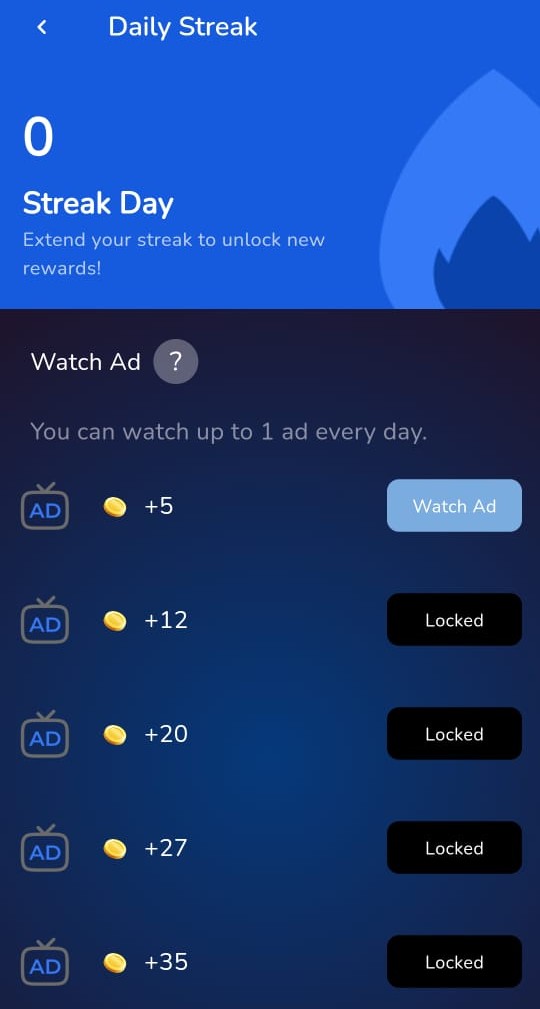 Home Screen: तो जैसे कि आप लोग नीचे की स्क्रीन में देख सकते हो यहां पर आपको दिख रहा होगा कि सारे कमाई के तरीके दिख रहे हैं अपनी कितनी कमाई की है वह कॉइन में ऊपर शो हो रही है और आसान सा यूजर इंटरफेस है तो चलिए शुरू करते हैं और जितने भी यहां पर कमाई के तरीके मौजूद है उनको एक-एक करके आपको बताते हैं.