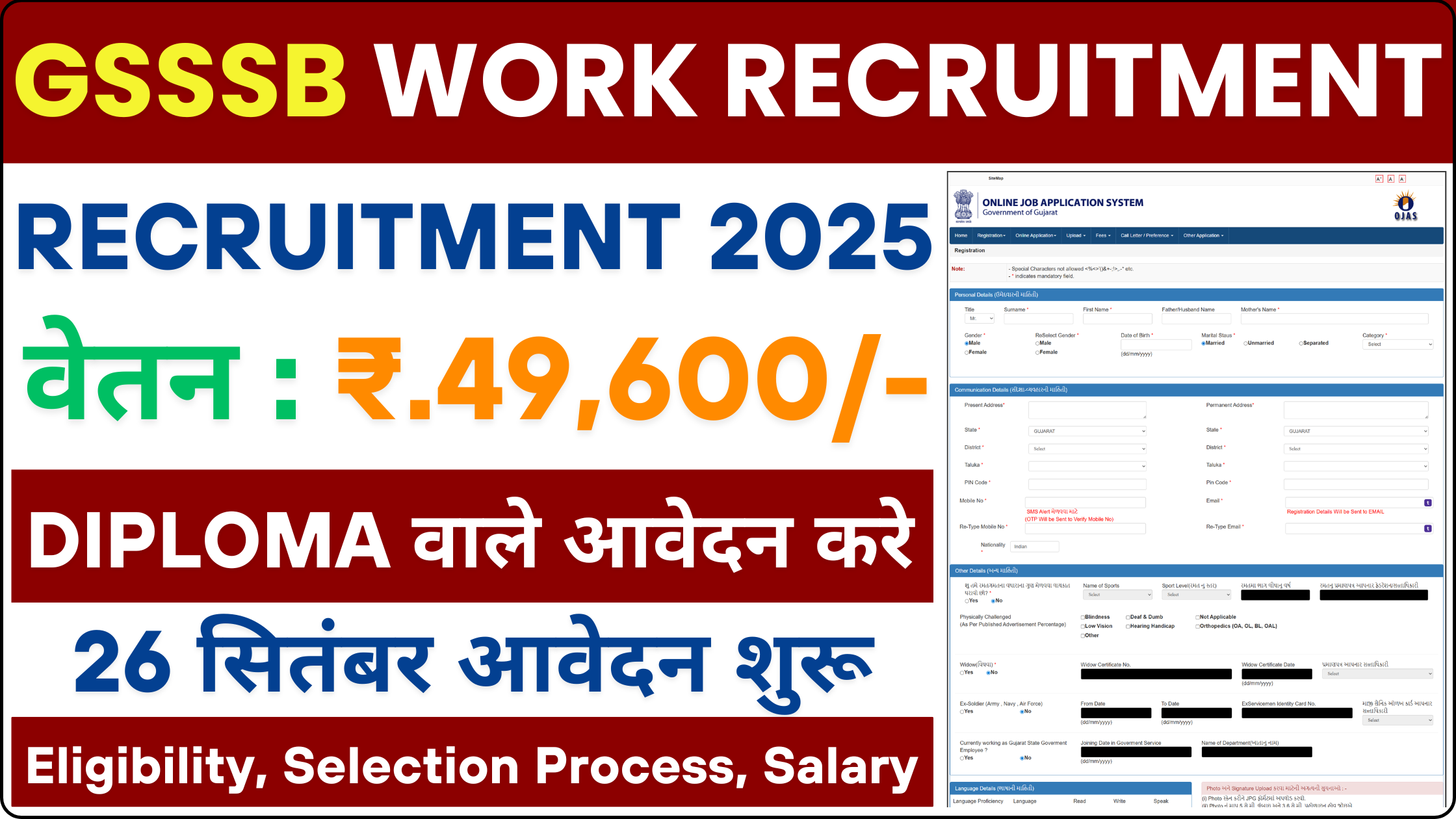 GSSSB (Gujarat Secondary Service Selection Board) ने Additional Assistant Engineer (Electrical) के 51 पदों के लिए भर्ती अधिसूचना जारी की है। जो उम्मीदवार Diploma in Electrical Engineering रखते हैं उनके लिए यह सुनहरा अवसर है। आवेदन प्रक्रिया 26 सितंबर 2025 से शुरू हो चुकी है और 10 अक्टूबर 2025 तक चलेगी।