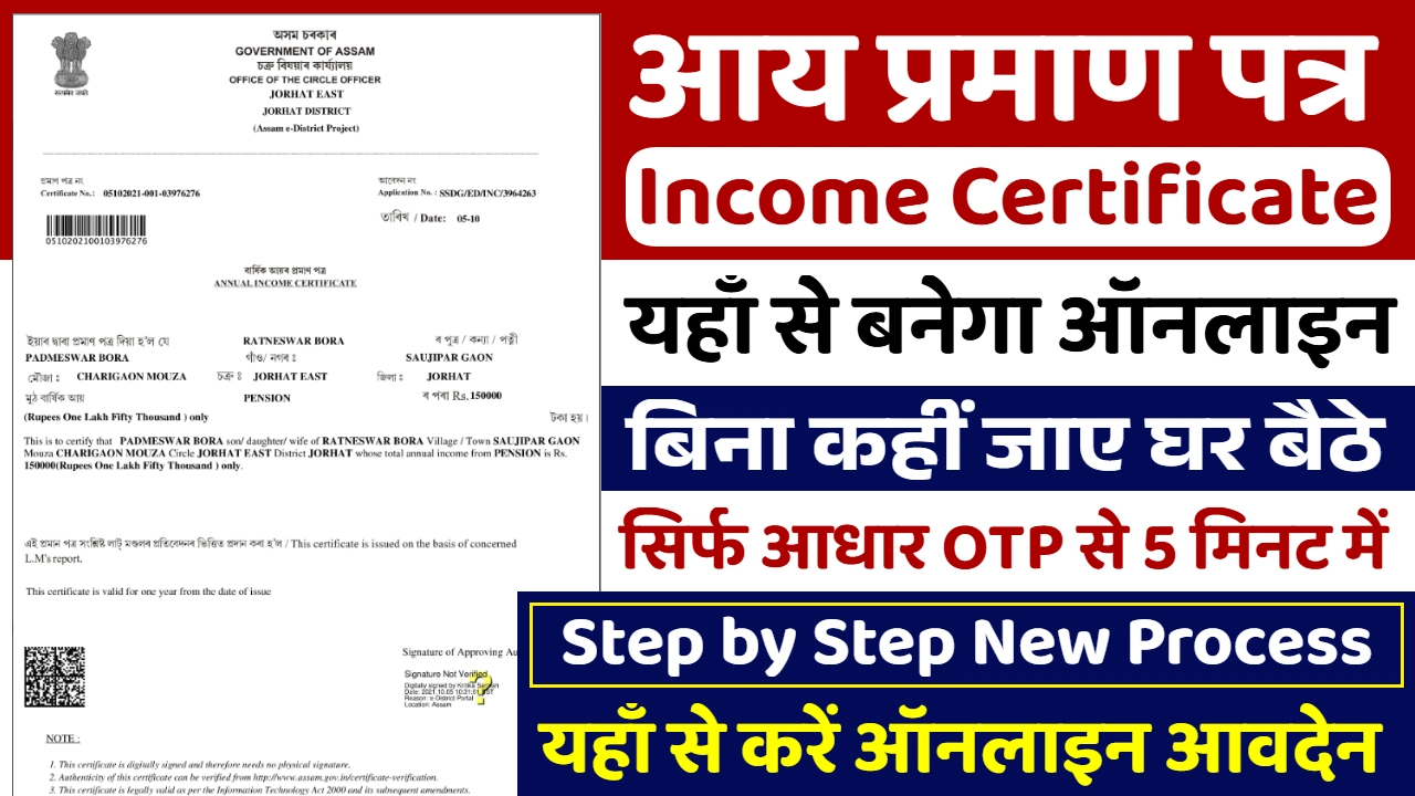 नोट: आय प्रमाण पत्र में किसी भी प्रकार की न्यूनतम आय आवश्यक नहीं होती। चाहे आपकी आय 50,000 हो या 10 लाख—आप आवेदन कर सकते हैं।