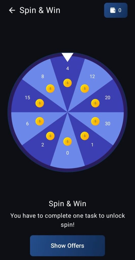 Spin & Win : तो दोस्तों जैसे कि आप लोग नीचे की स्क्रीन में देख सकते हो यहां पर आपको बस स्पिन करना है और उसी के बदले में आपके यहां पर कॉइन मिलेंगे जब आप एक बार यहां पर स्पिन करते हो तो आपके यहां पर एक कॉइन से लेकर 30 कॉइन तक जितने का मौका मिलता है वह भी बिल्कुल फ्री में .