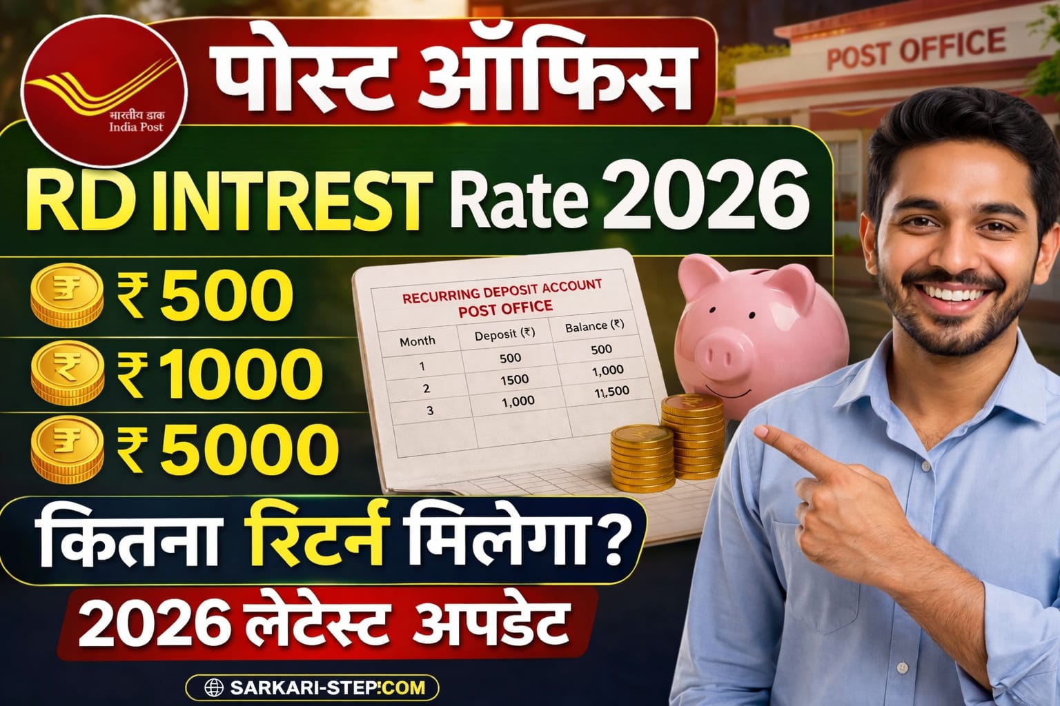 💰 Post Office RD Interest Rate 2026: ₹500, ₹1000 और ₹5000 पर कितना Return मिलेगा? (Full Guide) :