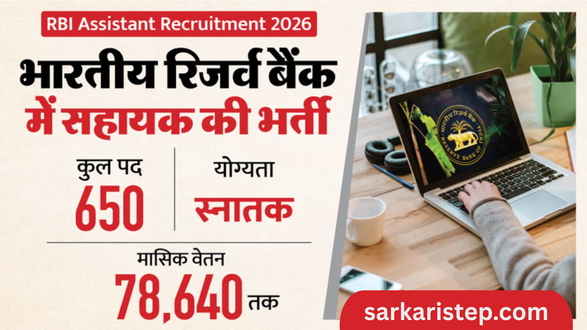 अगर आप बैंकिंग सेक्टर में एक सुरक्षित और सम्मानजनक सरकारी नौकरी की तलाश में हैं, तो आपके लिए बड़ी खबर है। भारतीय रिजर्व बैंक (RBI) ने Assistant – Panel Year 2025 के लिए कुल 650 पदों पर भर्ती का आधिकारिक नोटिफिकेशन जारी किया है । यह भर्ती देशभर के विभिन्न RBI कार्यालयों के लिए की जा रही है।