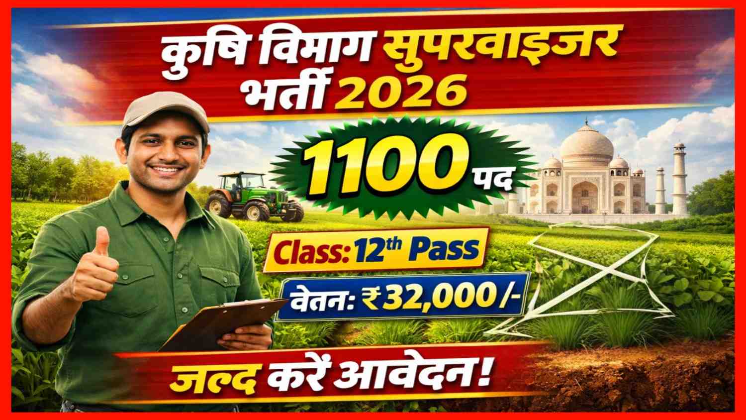 अगर आप B.Sc Agriculture की डिग्री रखते हैं और राजस्थान में सरकारी नौकरी की तलाश कर रहे हैं, तो आपके लिए शानदार मौका है। Rajasthan Staff Selection Board (RSSB) ने वर्ष 2026 के लिए 1100 Agriculture Supervisor (कृषि पर्यवेक्षक) पदों पर भर्ती का नोटिफिकेशन जारी कर दिया है।