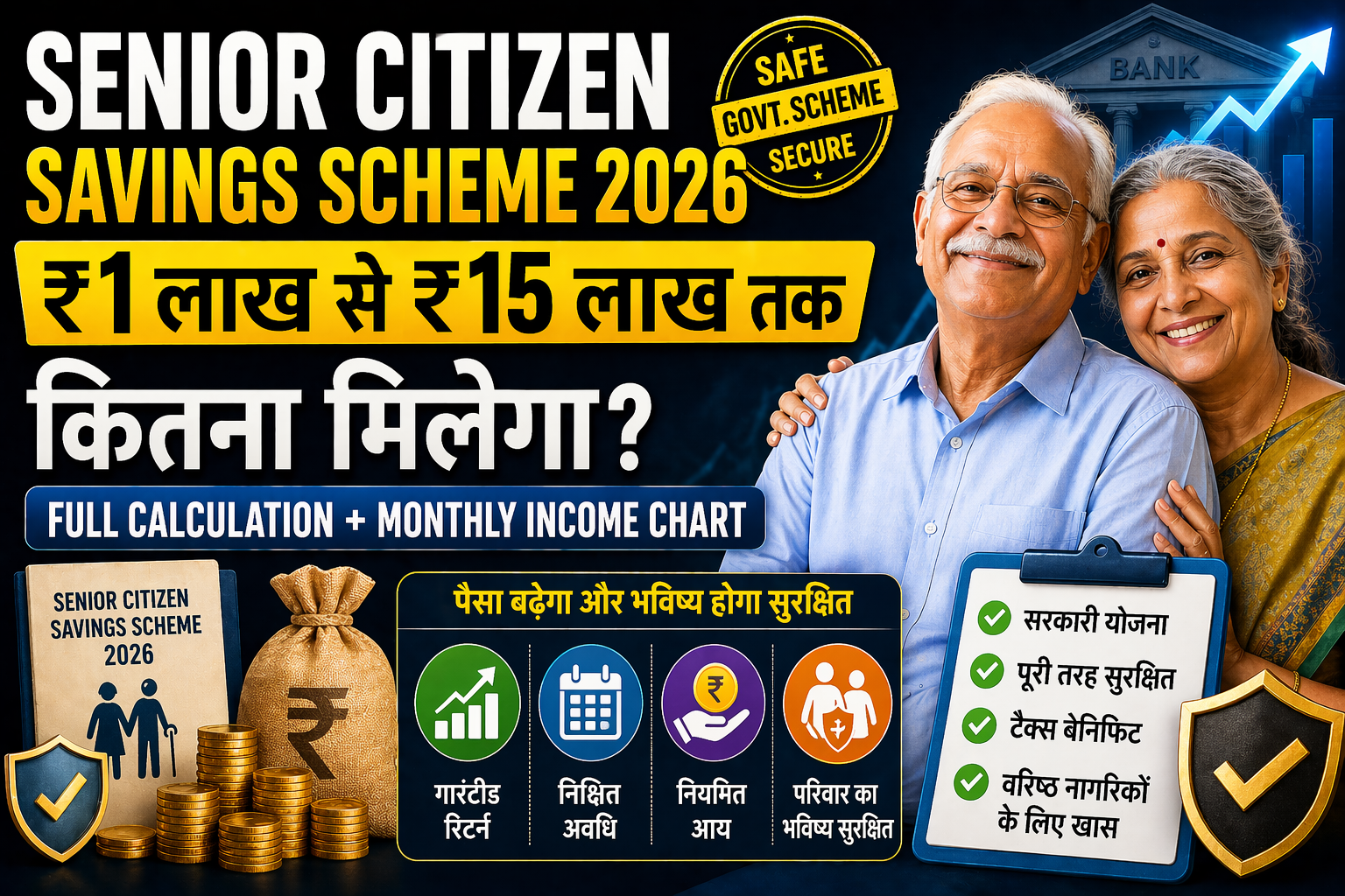 इस article में हम SCSS को पूरी detail में समझेंगे — यह scheme क्या है, 2026 में इसके features क्या हैं, ₹1 लाख से ₹15 लाख तक कितना return मिलेगा, और यह FD से कितनी बेहतर है। सब कुछ real numbers और examples के साथ।