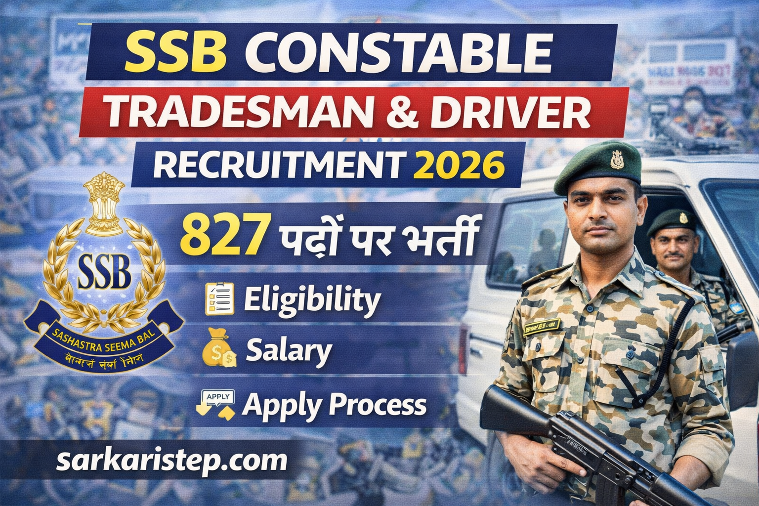 SSB Constable Tradesman & Driver Recruitment 2026 – 827 पदों पर भर्ती | Full Detail Guide