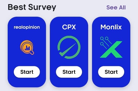 Survey Wall : तो यह भी कुछ कुछ ऑफर और से मिलता जुलता ही है बस इसमें बदलाव यह है कि सर्वे के अंदर जो यह सर्वे वॉल है यहां पर आपको सिर्फ सर्वे ही मिलते हैं बस अलग-अलग सर्वे प्रोवाइड यहां पर आपको देखेंगे और आपको कभी भी सर्वे की कमी नहीं होगी एक से बढ़कर एक और हाई पेइंग आपके यहां पर सर्वे दिए जाएंगे.